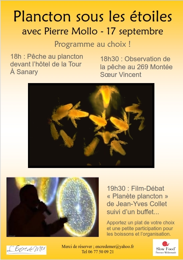 Notre ami Pierre Mollo, spécialiste du plancton, vient à Sanary le 17 septembre prochain. Pour celles et ceux qui ne le connaissent pas encore, Pierre a découvert le plancton dans les années 70 avec les Japonais, et a eu l’occasion de travailler avec les pêcheurs de Bretagne, les paludiers de Guérande, les prud’hommes pêcheurs du Golfe du Lion pour la mise en place d’élevages aquacoles (écloserie de homards de Houat, élevages extensifs…), avant d’être enseignant-chercheur. Depuis plusieurs années, il développe de nombreux moyens de communication autour du plancton (films, livres, site internet, conférences, articles…) et parcourt de nombreux pays pour aider à élaborer des projets : élevages aquacoles, musées et observatoires, opérations de collecte du plancton avec des plaisanciers, ateliers de coopération entre les usagers de la mer (agriculteurs, pêcheurs, conchyliculteurs) et les politiques…